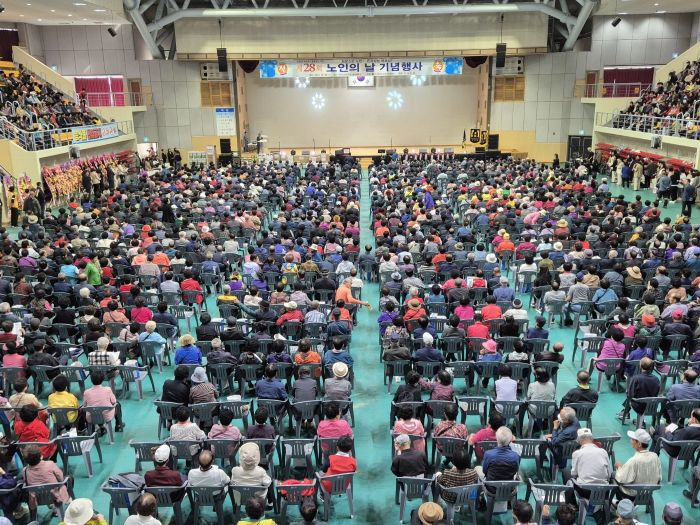 대한노인회 부안군지회(지회장 김성태)는 지난 16일 부안스포츠파크 실내체육관에서 읍면 경로당 어르신들을 비롯하여 권익현 군수, 박병래 의장, 김수안 교육장, 이승명 경찰서장, 도• 군의원 등 2,500여명이 참석한 가운데 제28회 노인의 날 기념행사가 성대하게 열였다.